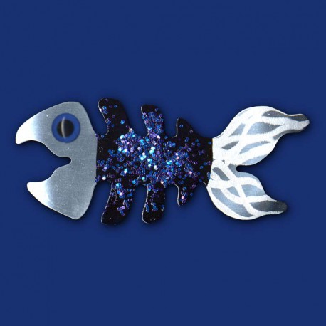 Schöner Glitzerfisch, silber-blaue Fischgräte als Schmuck Brosche,